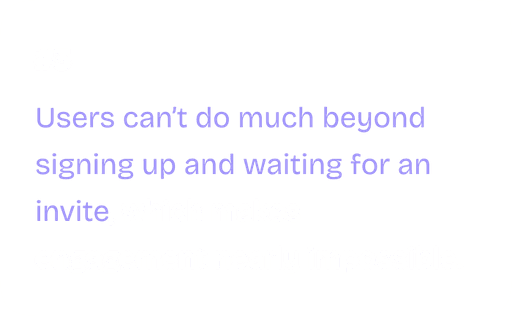 Users can’t do much beyond signing up and waiting for an invite, which makes engagement nearly impossible.