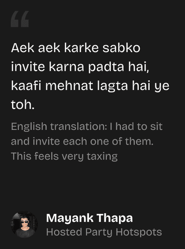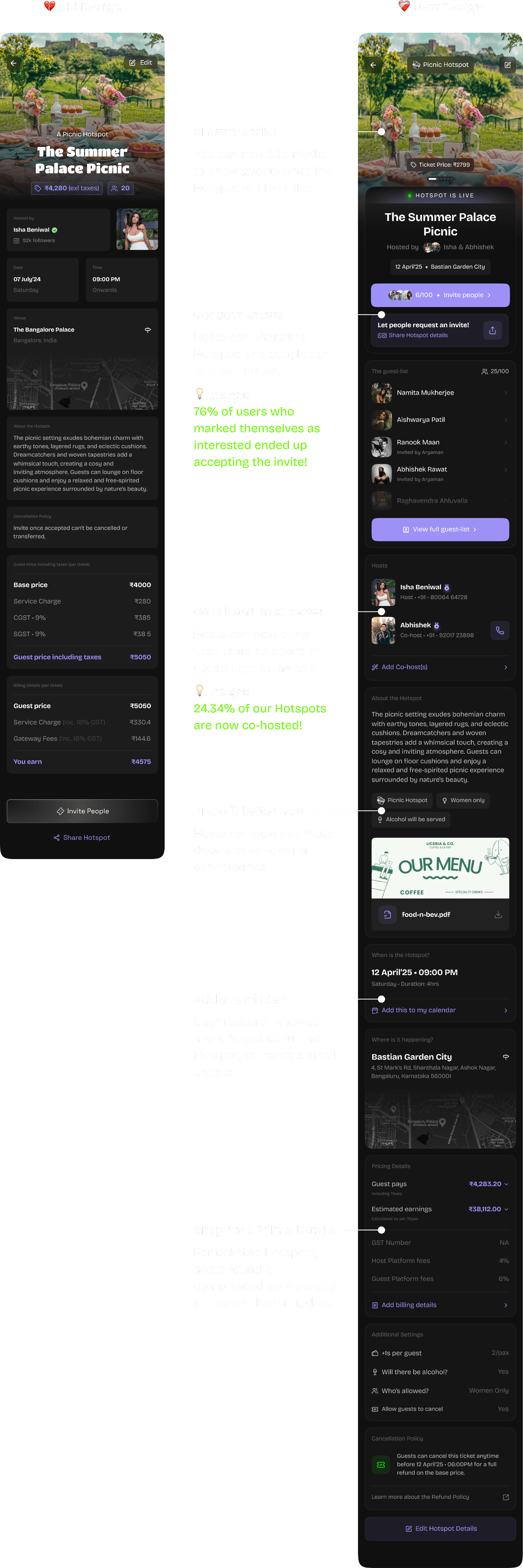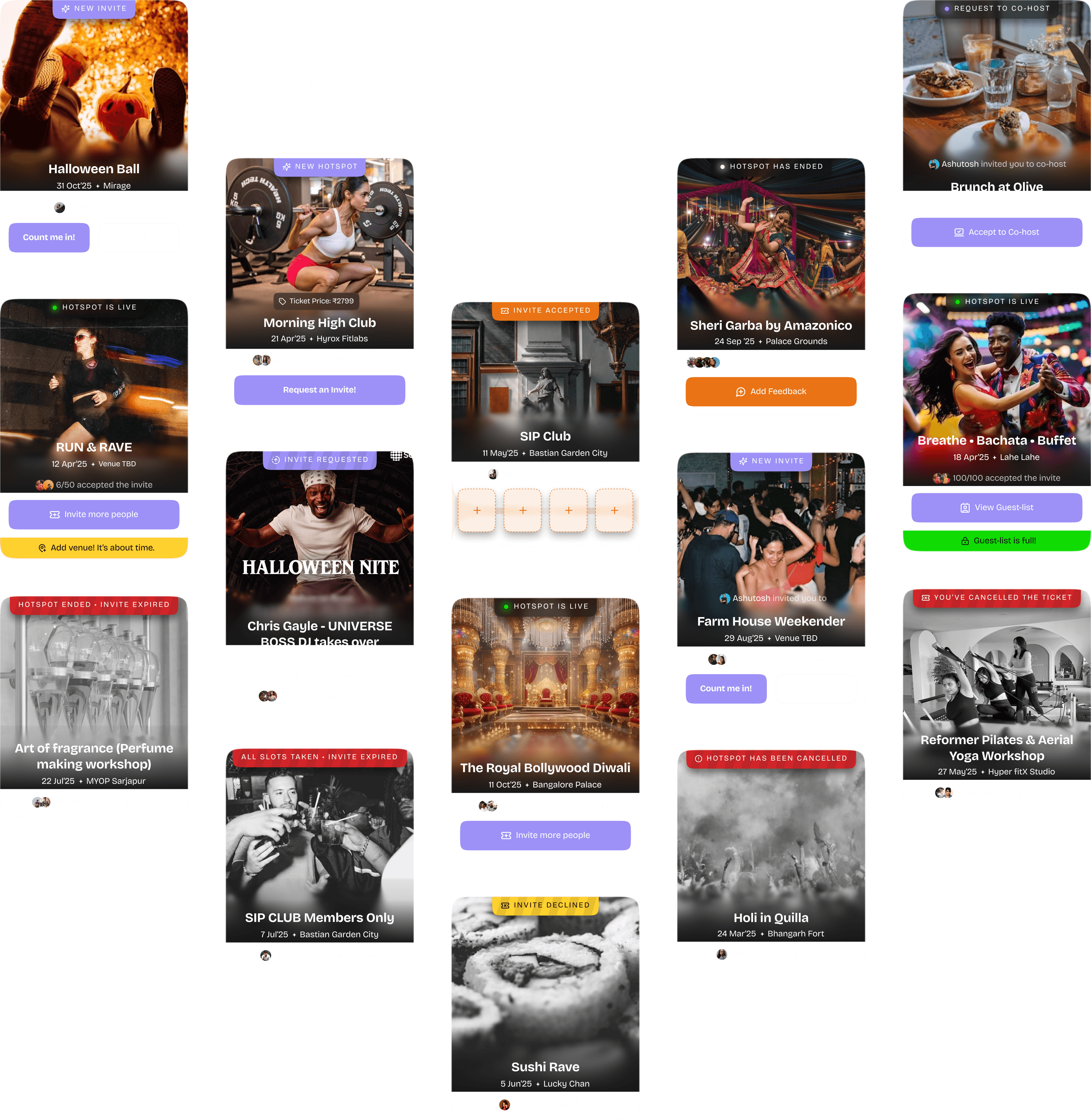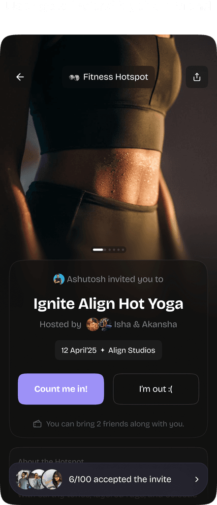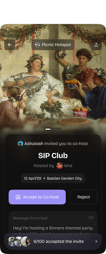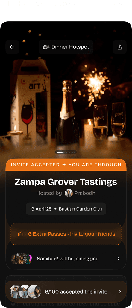 We launched App V1.0 in December 2024 (only for Bengaluru) with core features aimed at validating our hosting concept. The main goal was to test whether an “Invite-Only” guest list ecosystem could effectively replace traditional ticketing.
