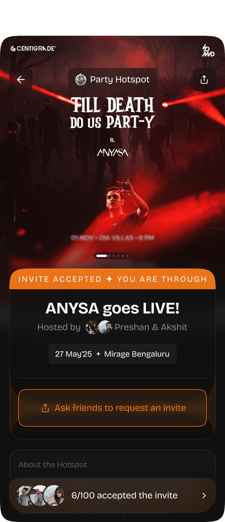 We launched App V1.0 in December 2024 (Bengaluru only) to test our “Invite-Only” guest list model as an alternative to traditional ticketing.