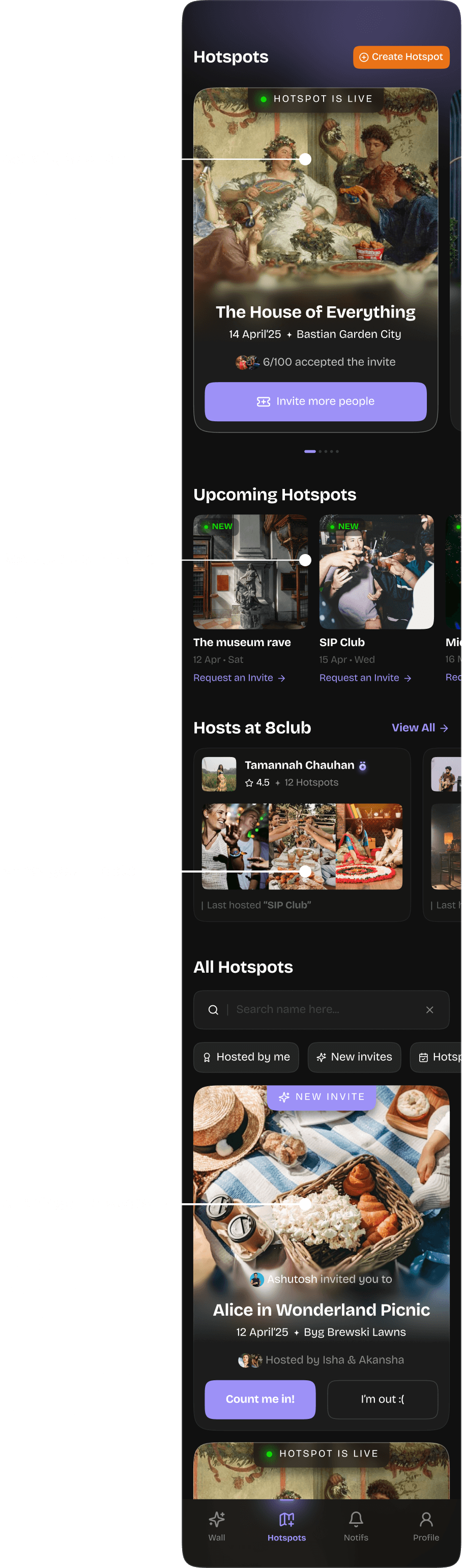 When the app first launched, the response was positive, the invite-only model felt new, personal, and exclusive, creating a strong sense of FOMO around attending Hotspots.