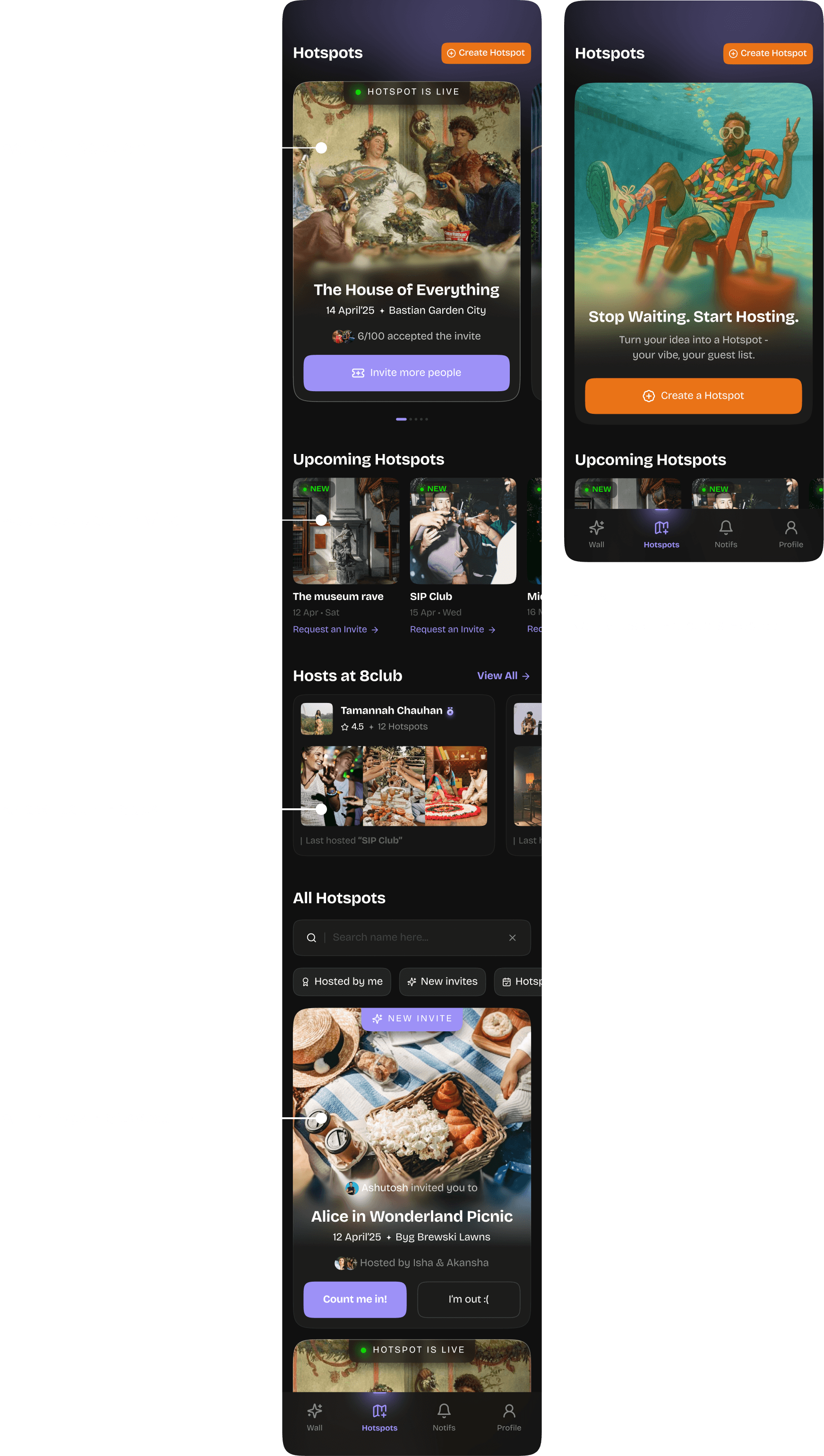 At this stage, users could create profiles, join the waitlist, and get Hotspot invites once approved. Hosts, on the other hand, had to apply before creating their own Hotspots.