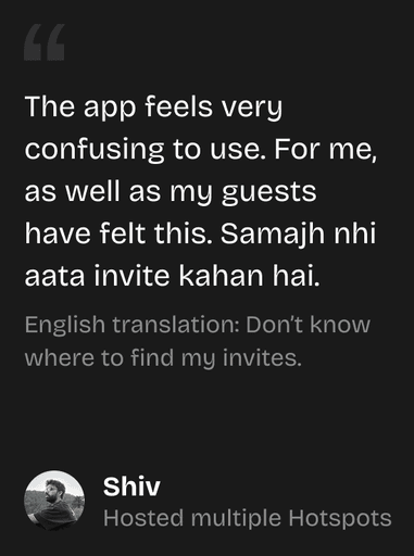 The study focused on their first-time Hotspot creation experience: what felt intuitive, what didn’t, missing features, overall usefulness, and pain points that stopped them from hosting again.